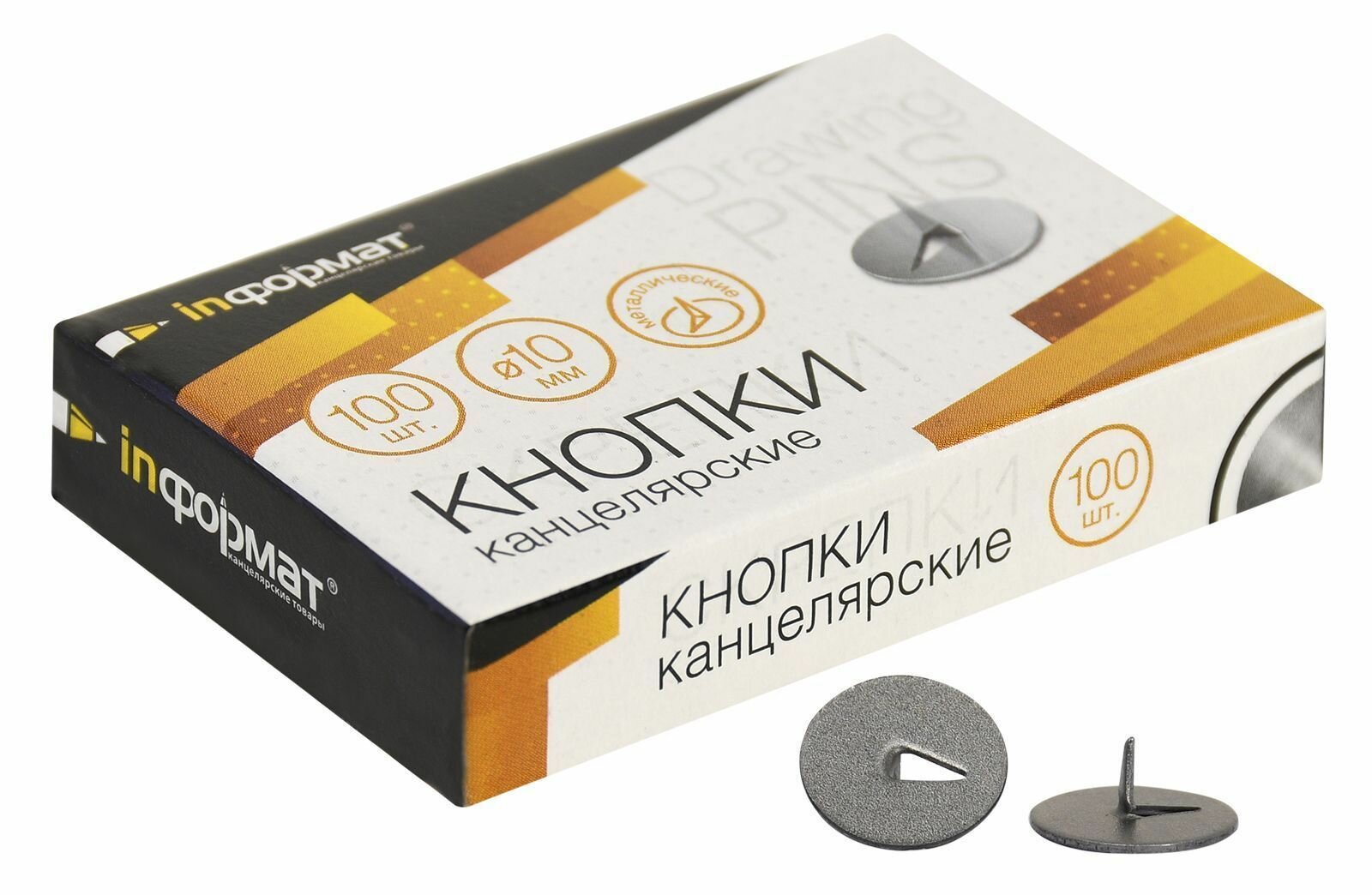 Кнопки канцелярские "inФормат", металл, 10 мм, 100 штук. Кнопки