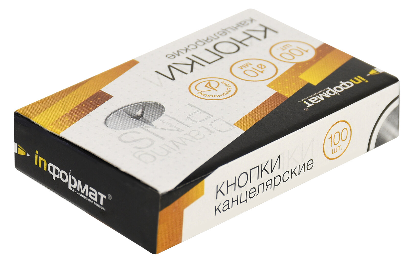 Купить Кнопки канцелярские INFORMAT 10 мм 100 штук, металл
