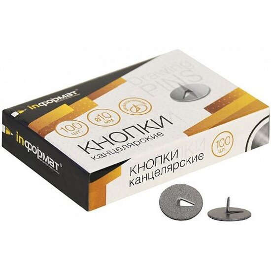 Кнопки канцелярские INFORMAT 10 мм 100 штук, металл интересное: