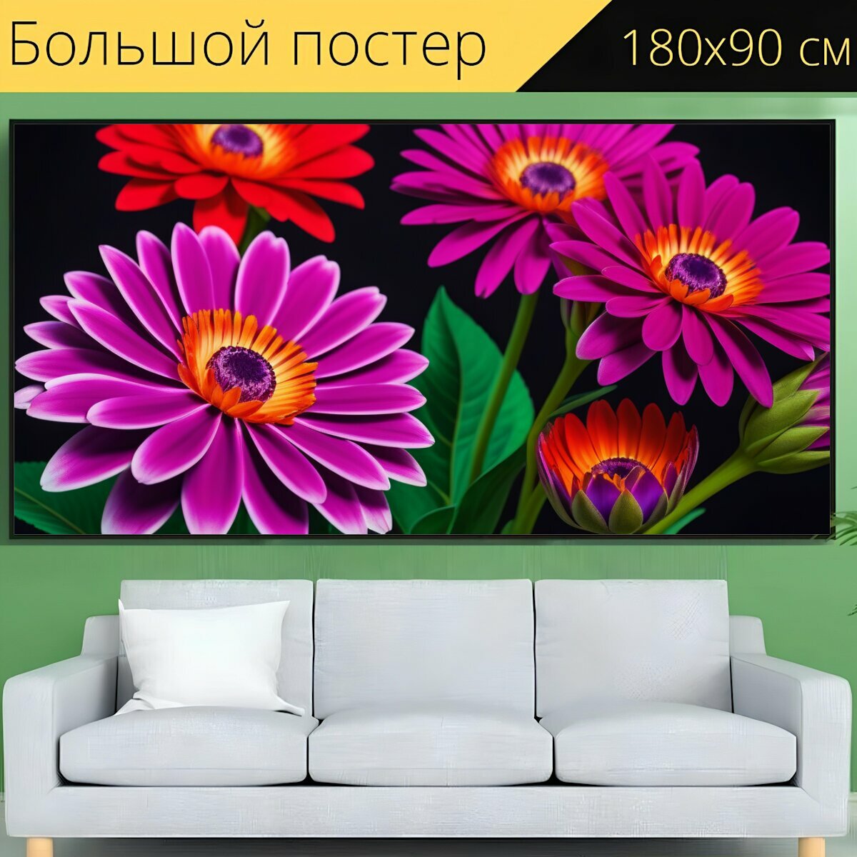 Большой постер "Цветочное вдохновение для художников" 180 x 90 см. для интерьера на стену в тубусе интересное: