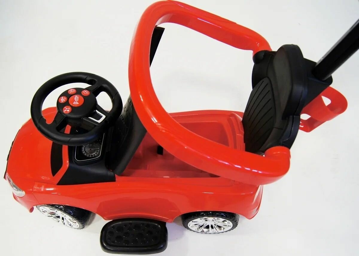 Детский толокар JY-Z06B, машина каталка с родительской ручкой, свет, звук, до 20 кг, 1,5-6 лет, красный