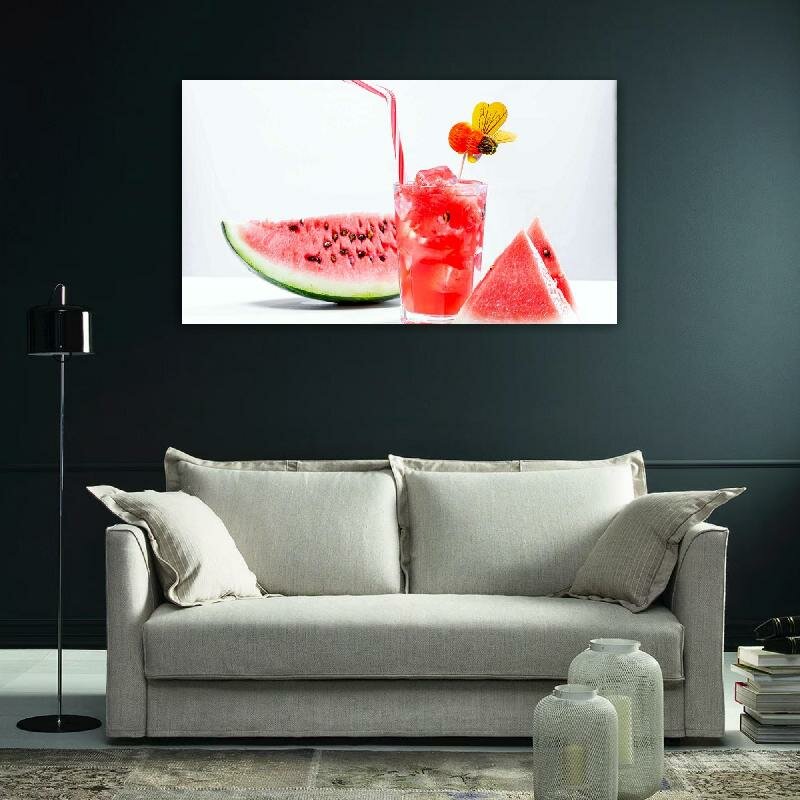Картина на холсте 60x110 Альянс Лес "Пчелы Арбузы Стакан кусочек" на подрамнике / интерьер/ декор интересное: