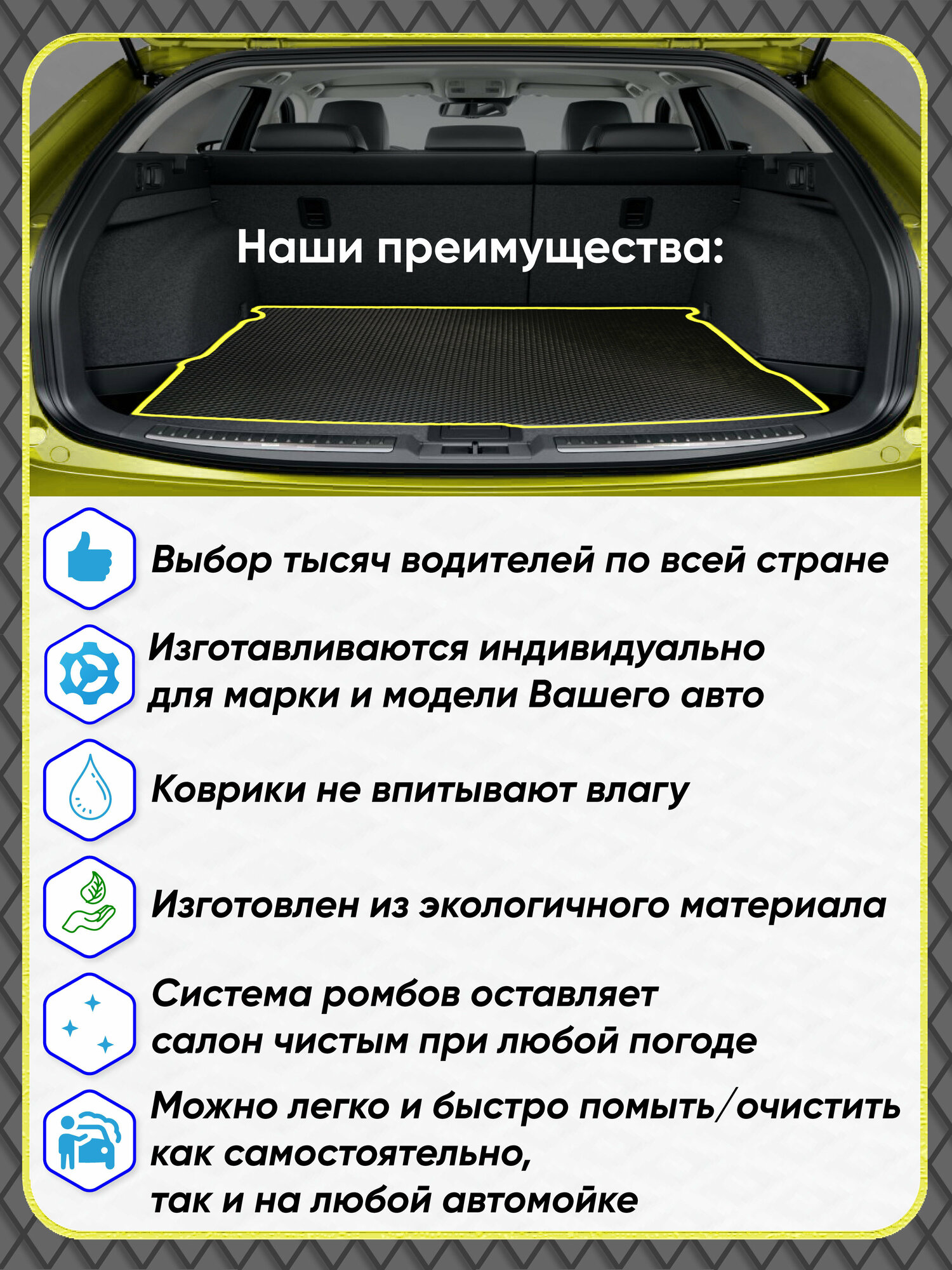 Автомобильный коврик в багажник ЕВА / EVA для Hyundai Solaris I хетчбек 2010-2017/Хендай Солярис I хетчбек интересное: