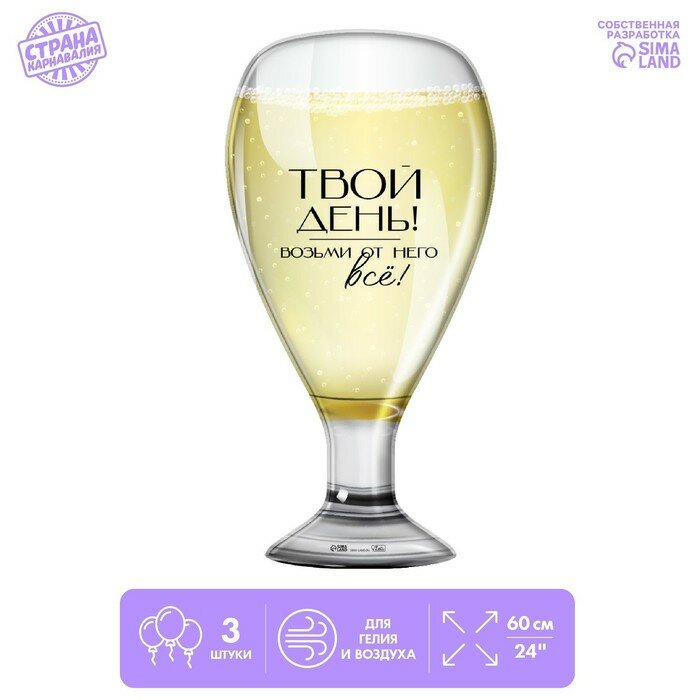 Купить Воздушный шар фольгированный 24" «Бокал», без подложки(3 шт.)