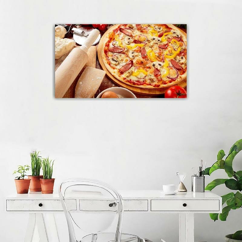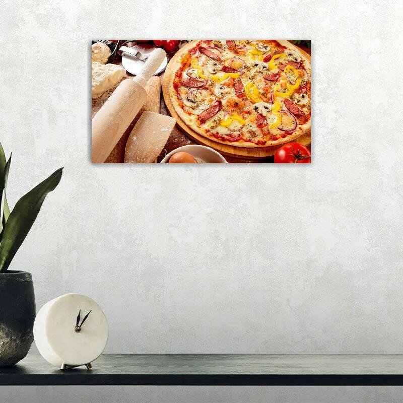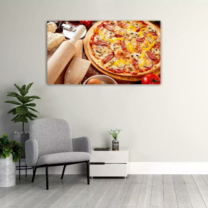 Картина на холсте 60x110 Альянс Лес "Помидоры Грибы пицца овощи сыр" на подрамнике / интерьер/ декор интересное: