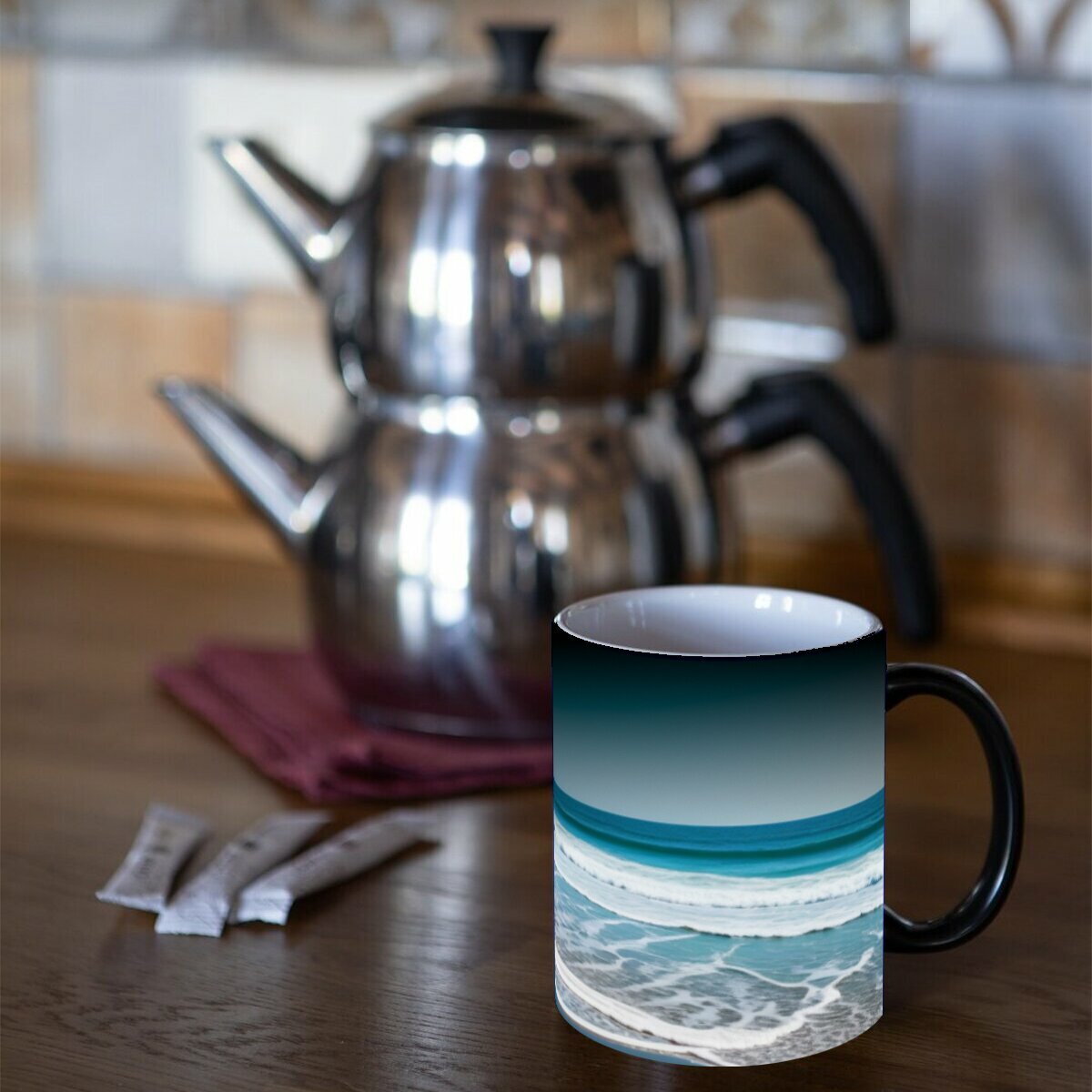 Купить Кружка хамелеон с принтом "Небольшое соревнование на пляже" 330 мл.