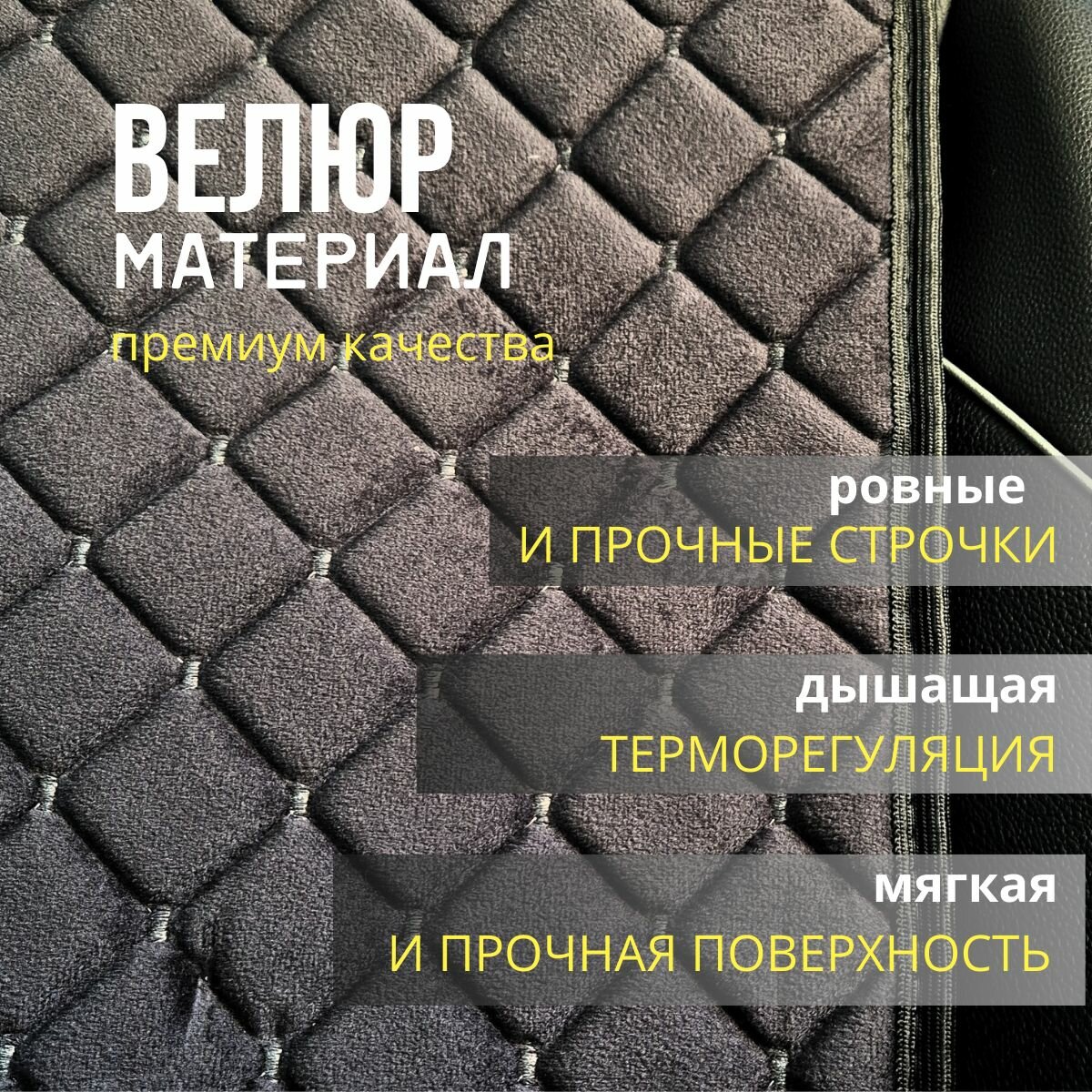 Накидки для Хендай Акцент (1999 - 2012) хэтчбек 3 двери / Hyundai Accent на весь салон, ромб, Велюр, Черный с серой строчкой интересное:
