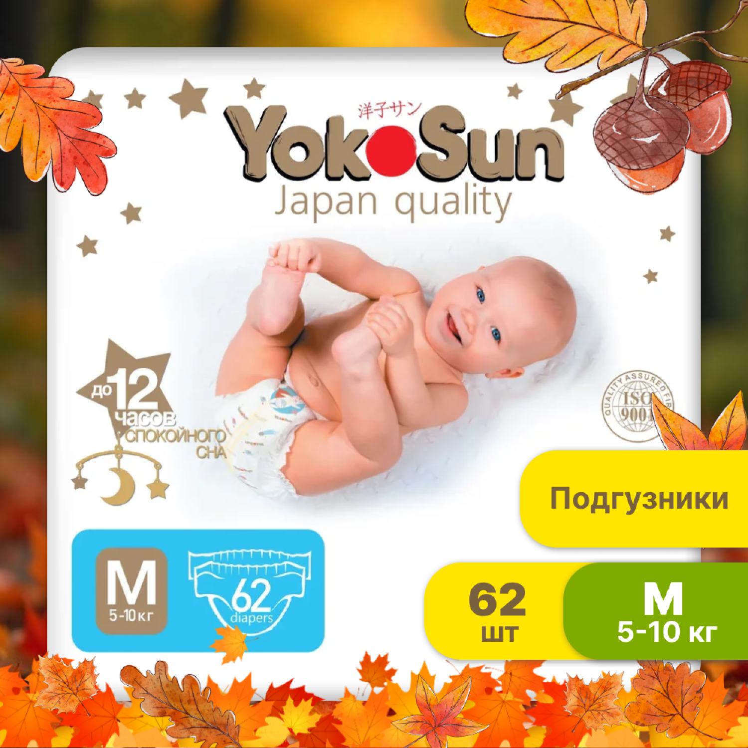 Купить Детские подгузники YokoSun Premium на липучках, размер 3/M (5-10 кг), 62 шт.