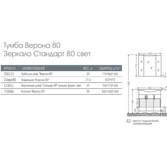 Тумба для умыв. "Верона-80" напол. (ум. Классик 80)
