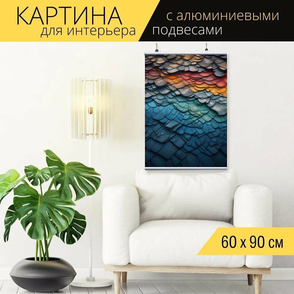 Картина на холсте "Текстуры и слои" с подвесами 60х90 см. для интерьера на стену интересное: