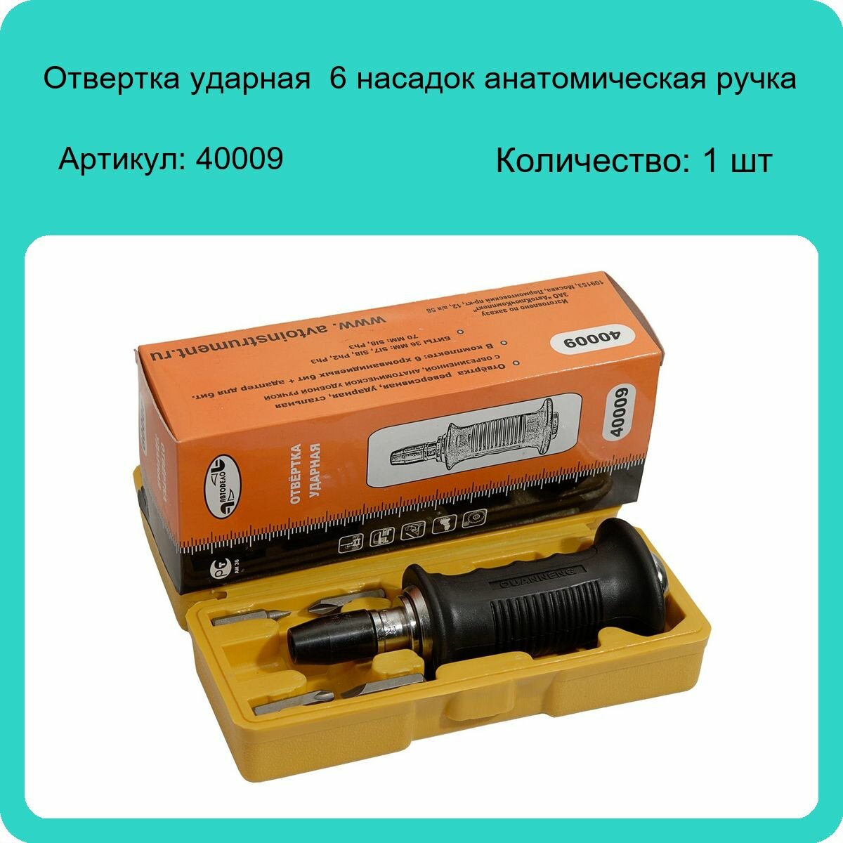 Автодело 40009 Отвертка ударная, анатомич. Ручка 6насадок футляр АвтоDело 40009