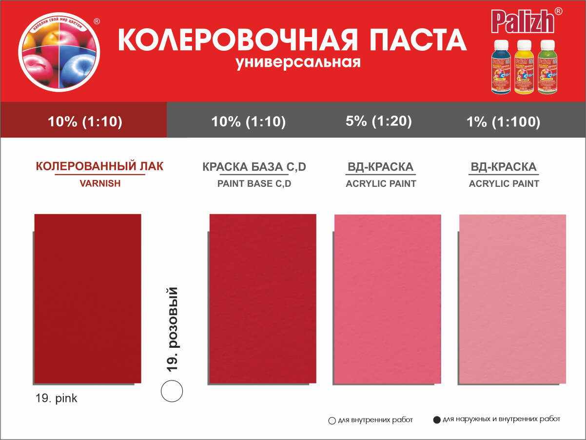 СохранитьПаста колер универ. "Palizh STANDART" 0,1л №19 розовый интересное: