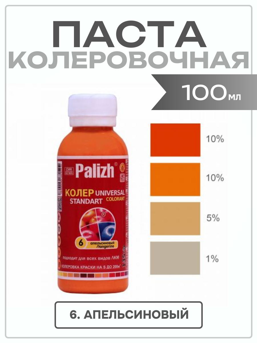 Купить Паста колер универ. "Palizh STANDART" 0,1л № 6 апельсин