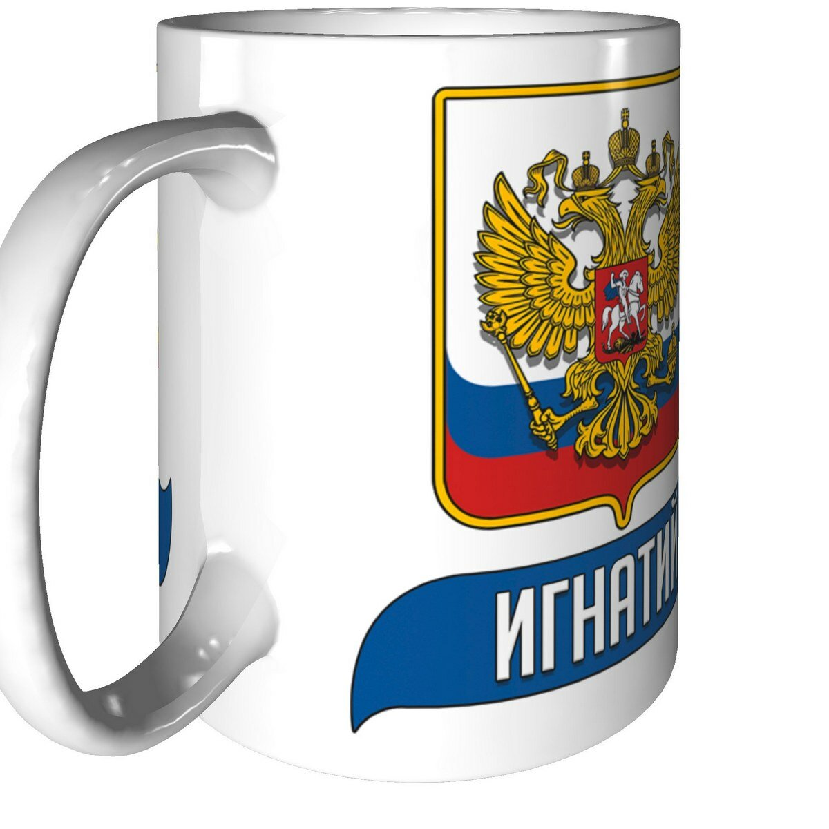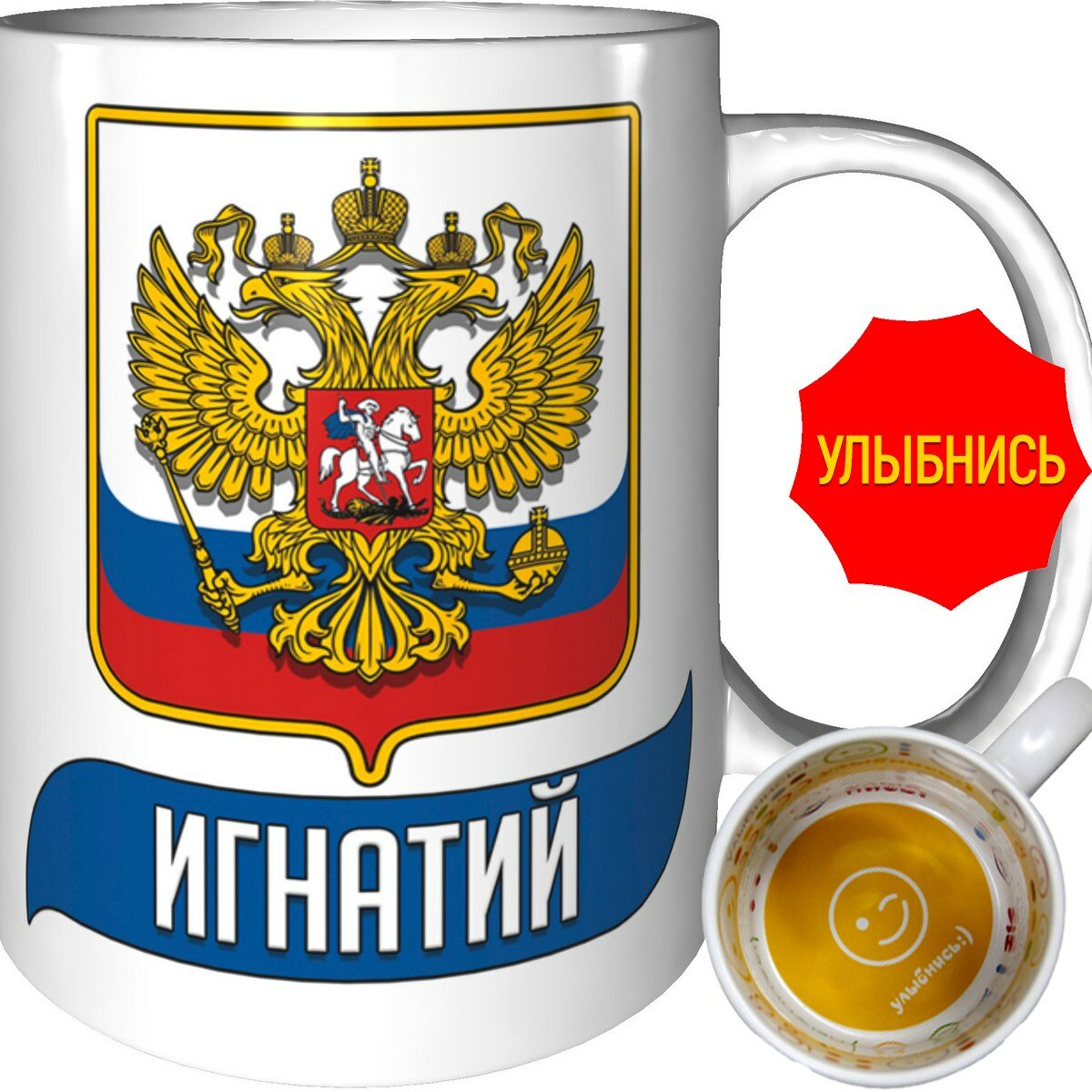 Кружка Игнатий с Флагом и Гербом России - внутри улыбнись интересное: