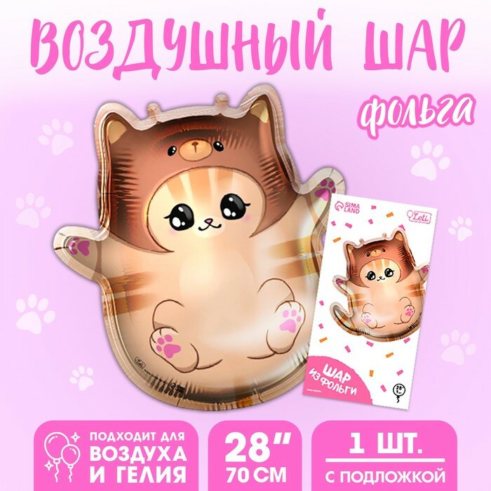 Шар фольгированный 28" «Котик в шапке», с подложкой интересное: