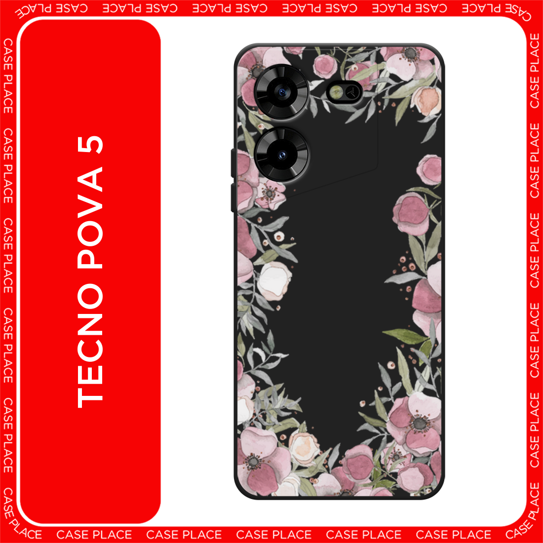 Купить Черный матовый чехол на Tecno Pova 5 / Техно Пова 5 с принтом Розовая цветочная рамка