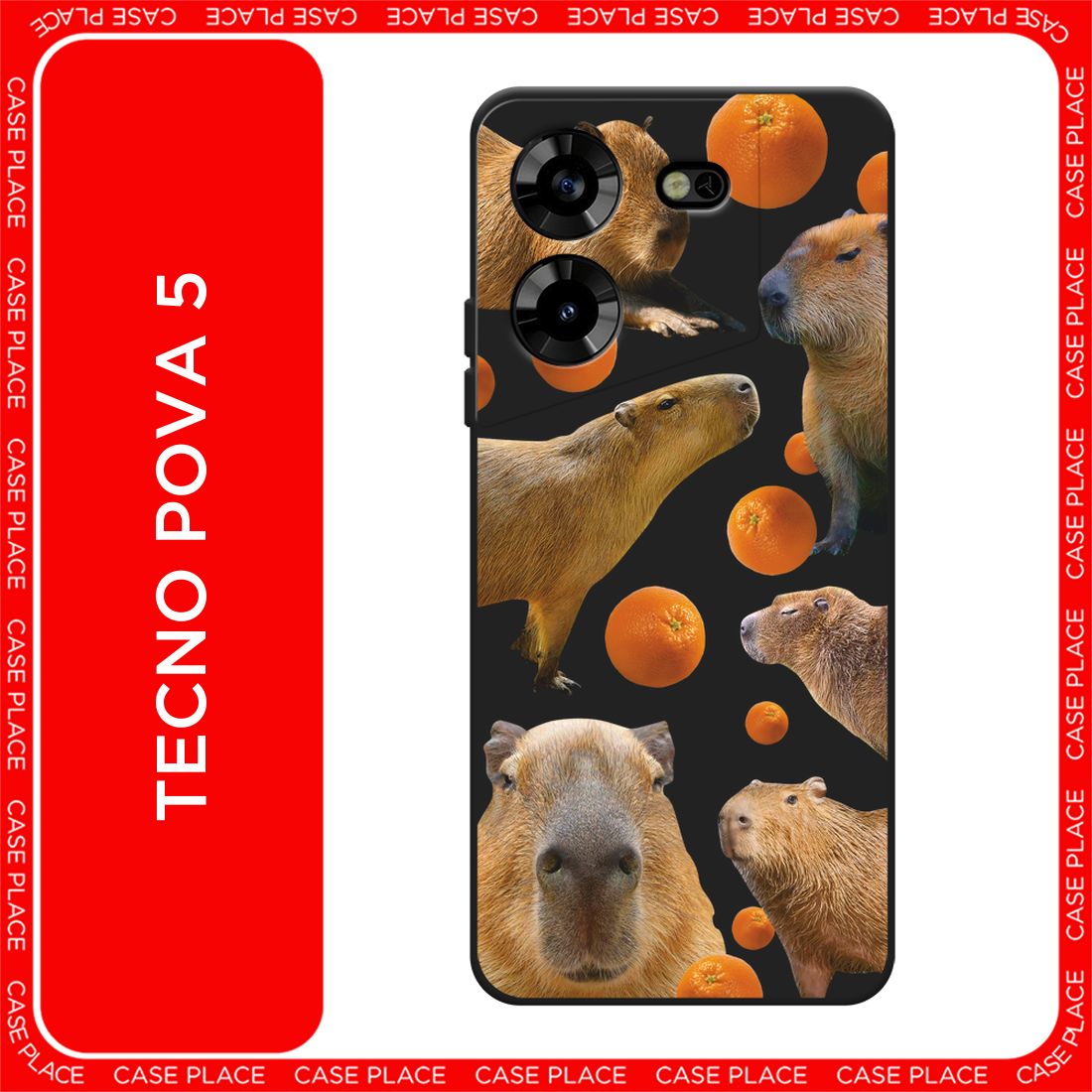 СохранитьЧерный матовый чехол на Tecno Pova 5 / Техно Пова 5 с принтом Капибара и апельсины интересное: