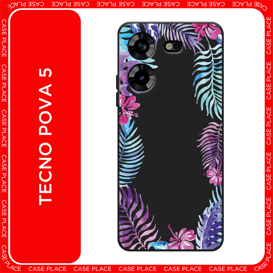 Купить Черный матовый чехол на Tecno Pova 5 / Техно Пова 5 с принтом Пальмовые ветви арт