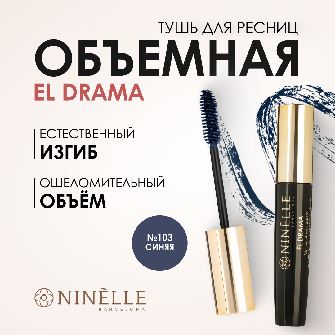 Ninelle Тушь для ресниц c эффектом объема El Drama, тон 103 синяя