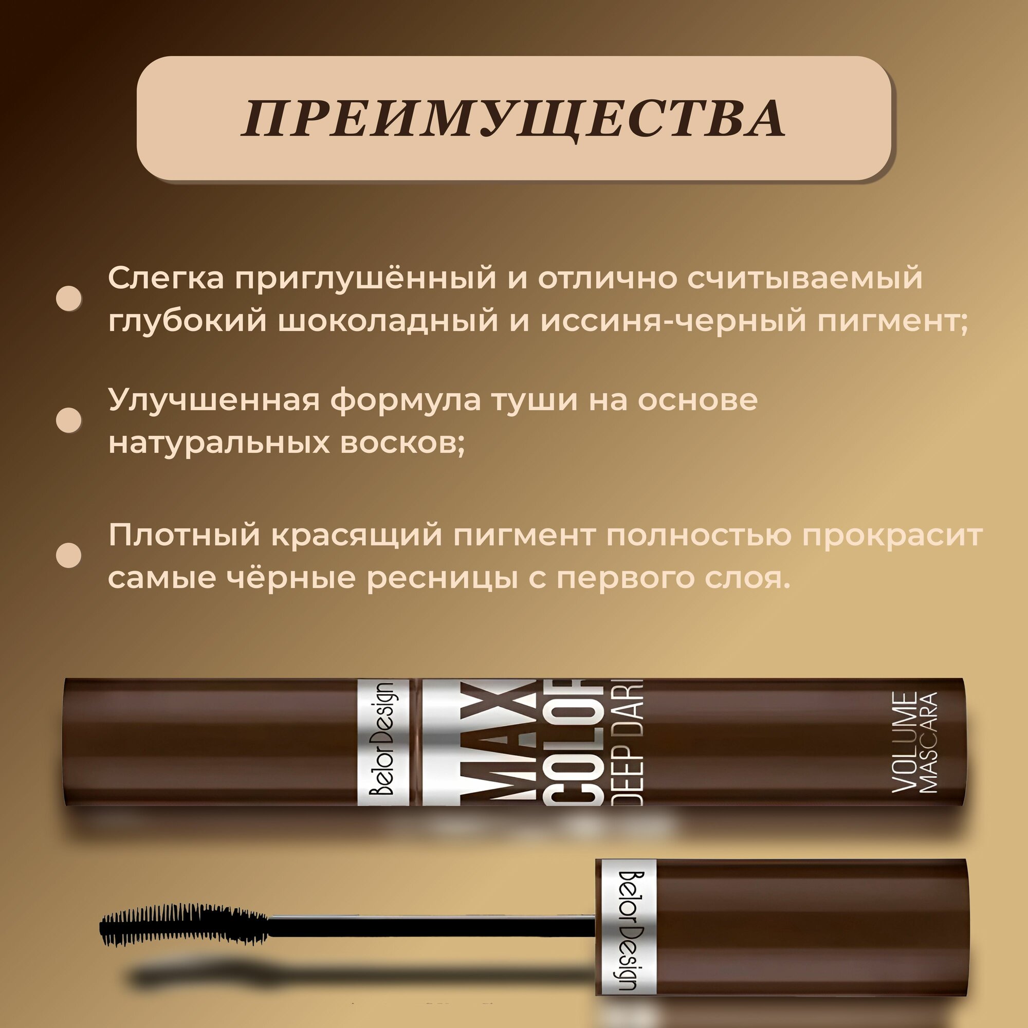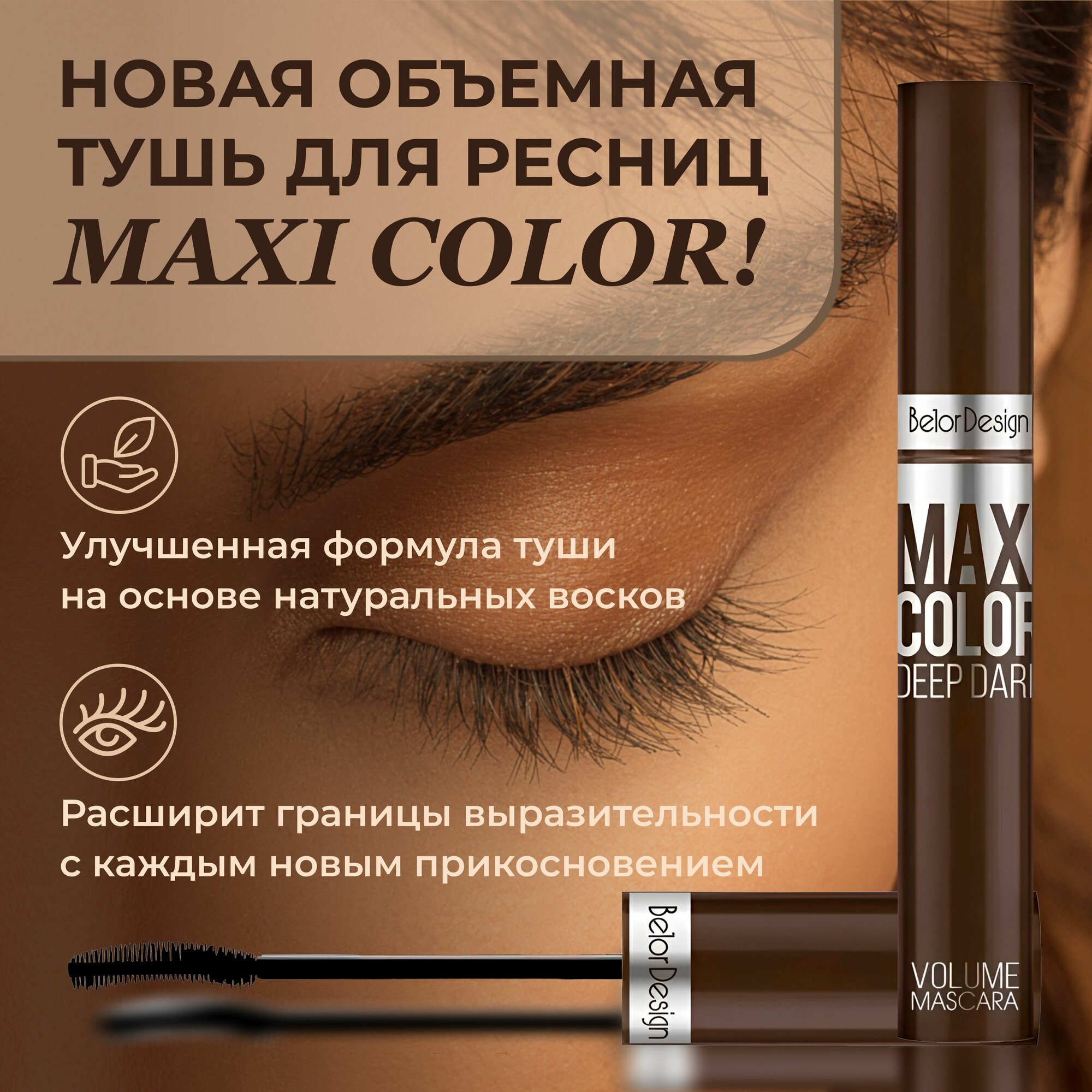 Тушь для ресниц BELOR DESIGN Maxi Color объемная, шоколадная