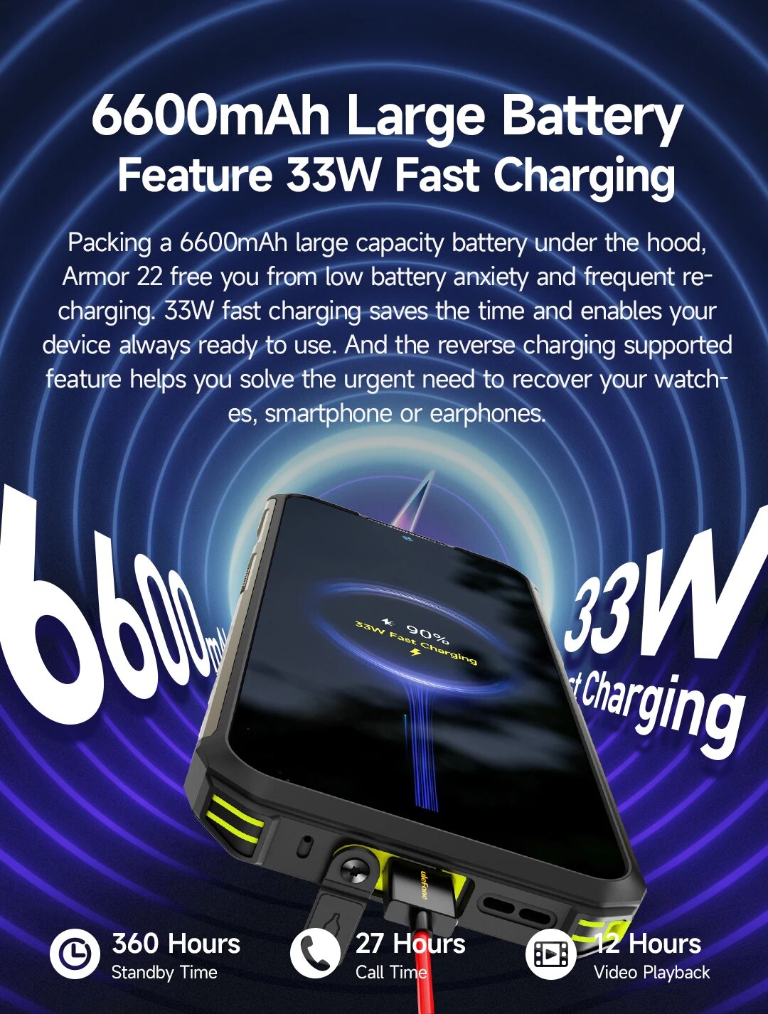 Ulefone Armor 22 Android 13, Up to 16 ГБ ОЗУ 128 ГБ/256 ГБ ПЗУ, 6.58"1080 x 2408 FHD+ 120Hz, 6600мАч 33Вт, NFC,64 МП, 8 ГБ, 256 ГБ, Ulefone, Armor 22, Глобальная версия, Смартфон, Черный, 8ГБ, 256ГБ, global, новый интересное: