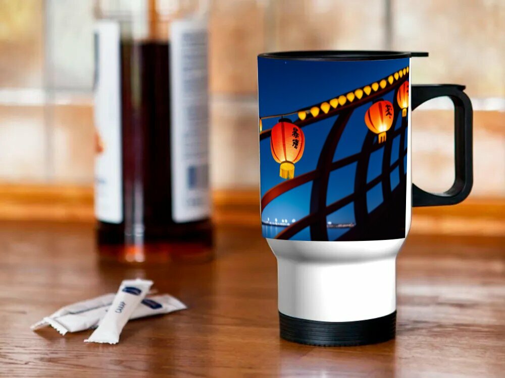Купить Тремокружка для авто с принтом "Луна и фонари на мосту" 0.5 л.