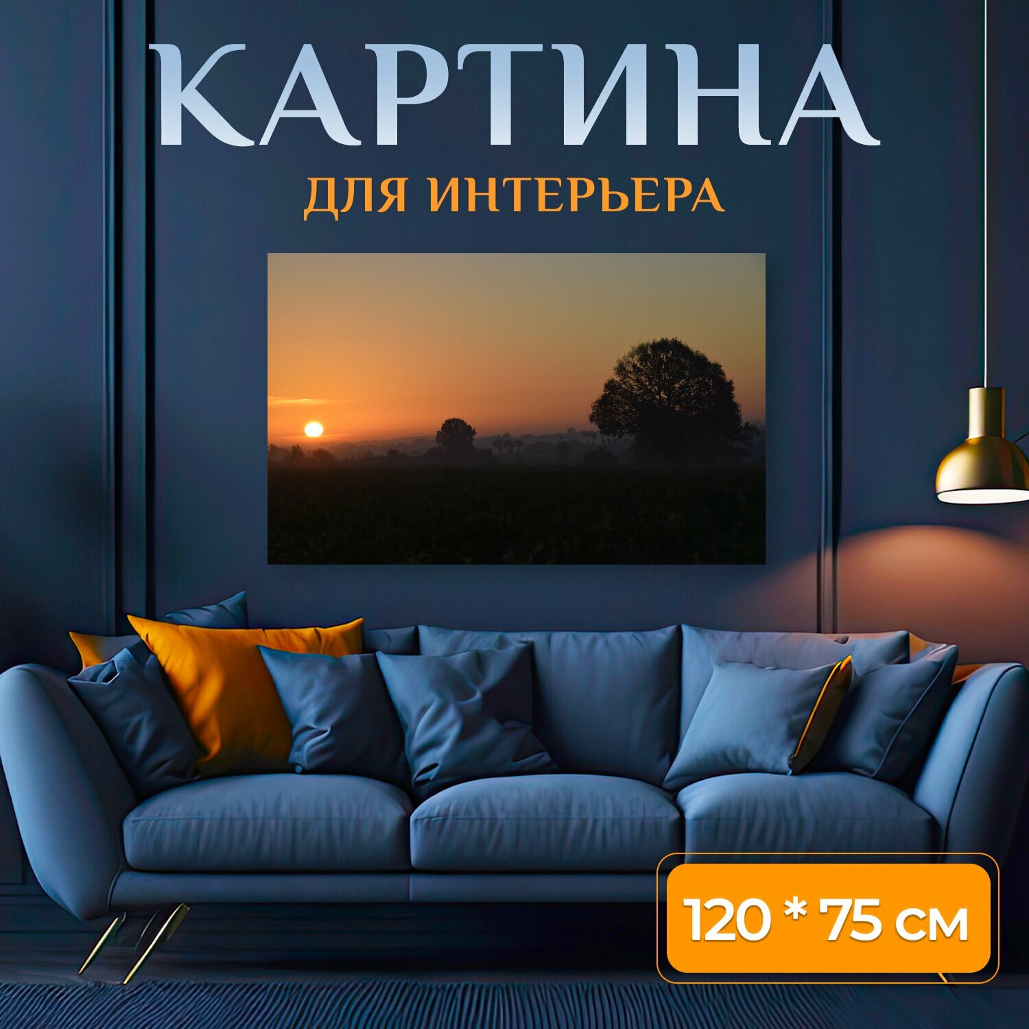 Купить Картина на холсте "Поле, восход солнца, силуэт" на подрамнике 120х75 см. для интерьера