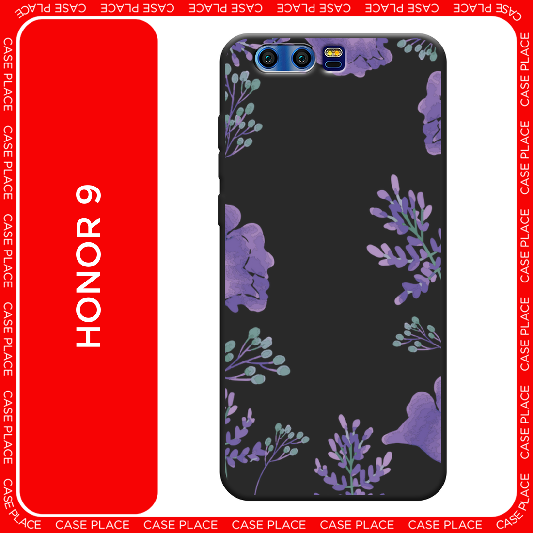 Купить Черный матовый чехол на Honor 9 / Хонор 9 с принтом Сиреневая цветочная рамка