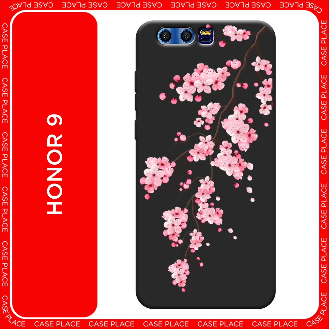 Купить Черный матовый чехол на Honor 9 / Хонор 9 с принтом Розовая сакура