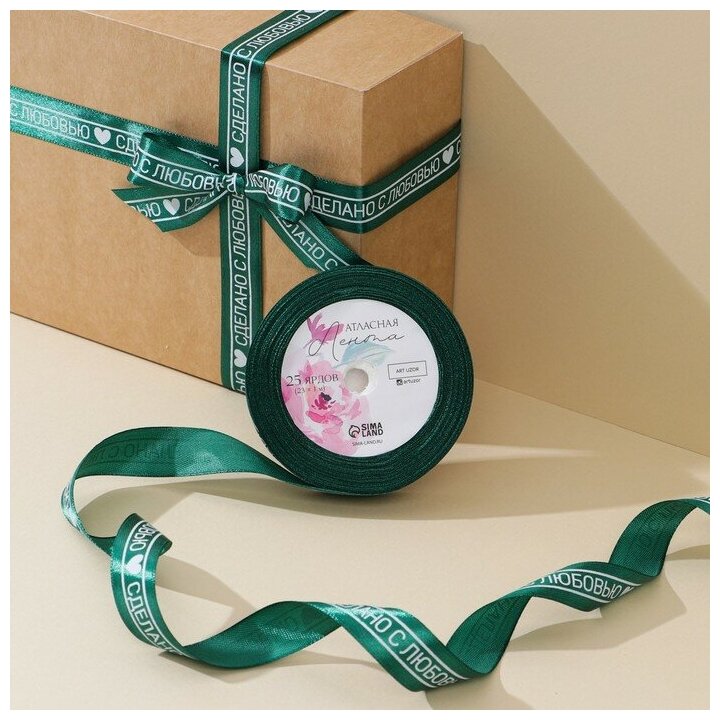 Лента атласная, подарочная упаковка, «Сделано с любовью», тиффани, 2 см х 22.5 м интересное: