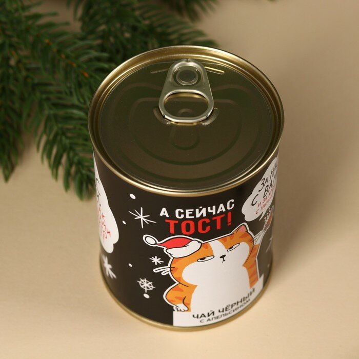 Новый год! Чай чёрный "Новый год: За нас с вами" в консервной банке, вкус: апельсин, 60 г. интересное:
