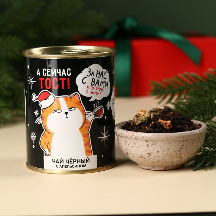 Купить Новый год! Чай чёрный "Новый год: За нас с вами" в консервной банке, вкус: апельсин, 60 г.