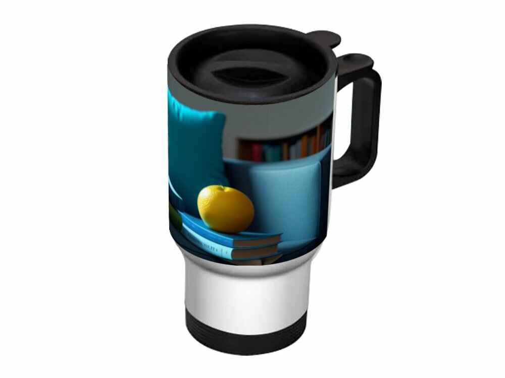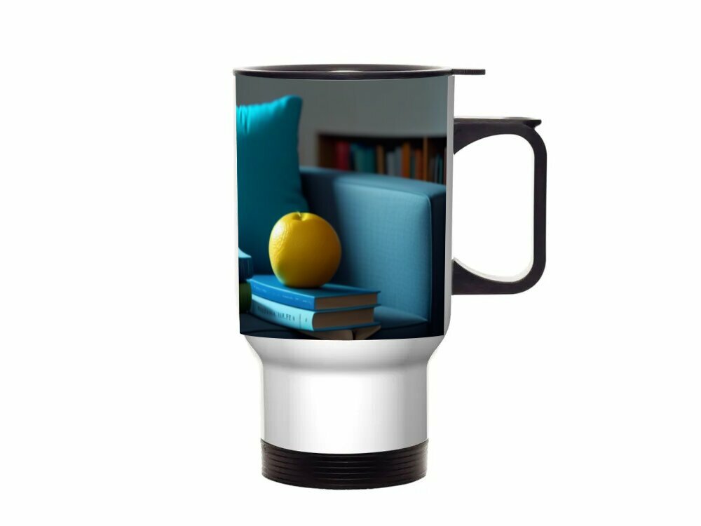 Тремокружка для авто с принтом "Фрукты и книги на уютном диване" 0.5 л. интересное: