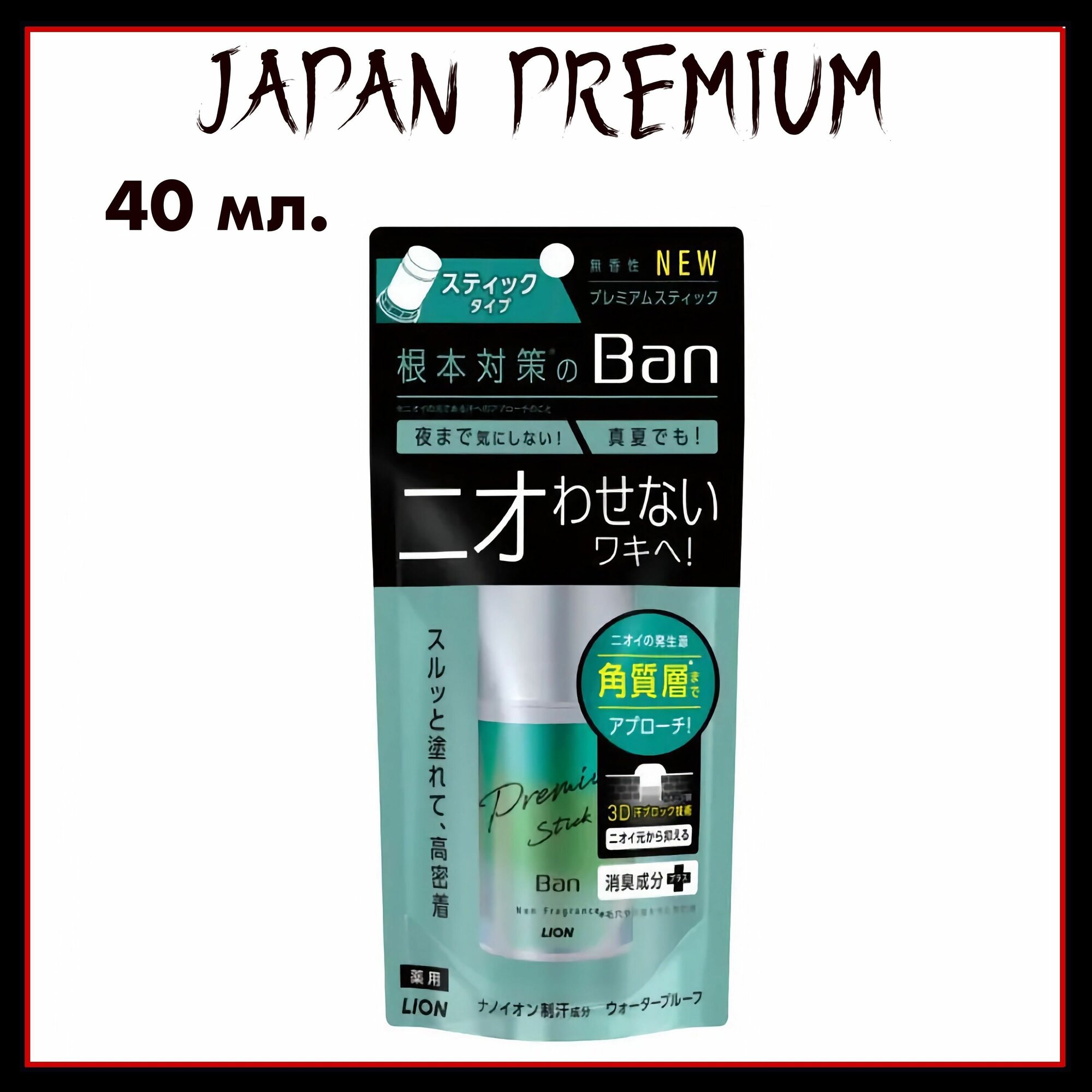 331575 LION Дезодорант-антиперпирант Ban Sweat Block Premium без запаха стик твердый 20 гр.