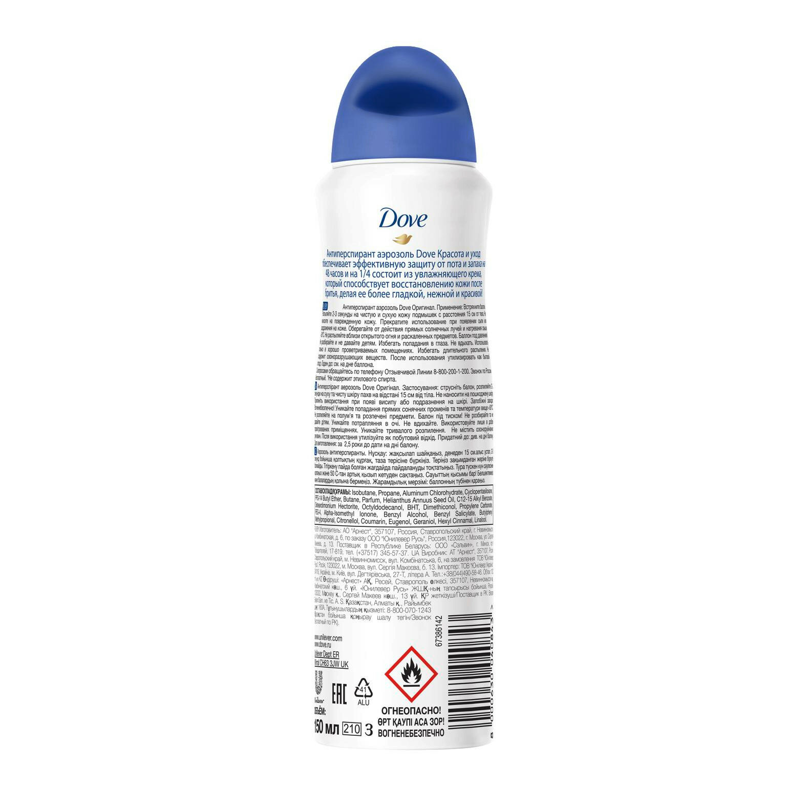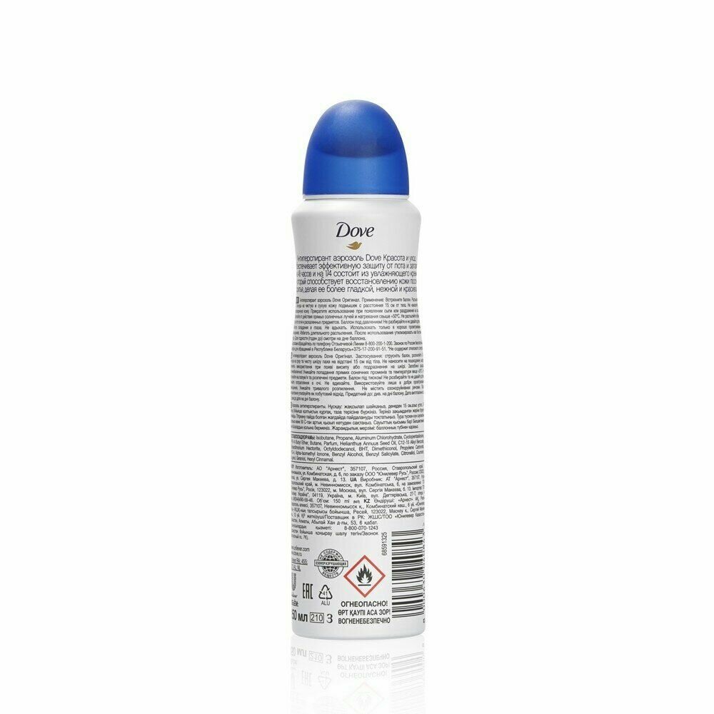 Дезодорант-антиперспирант аэрозоль Dove Original Красота и уход, 150 мл, 1 шт