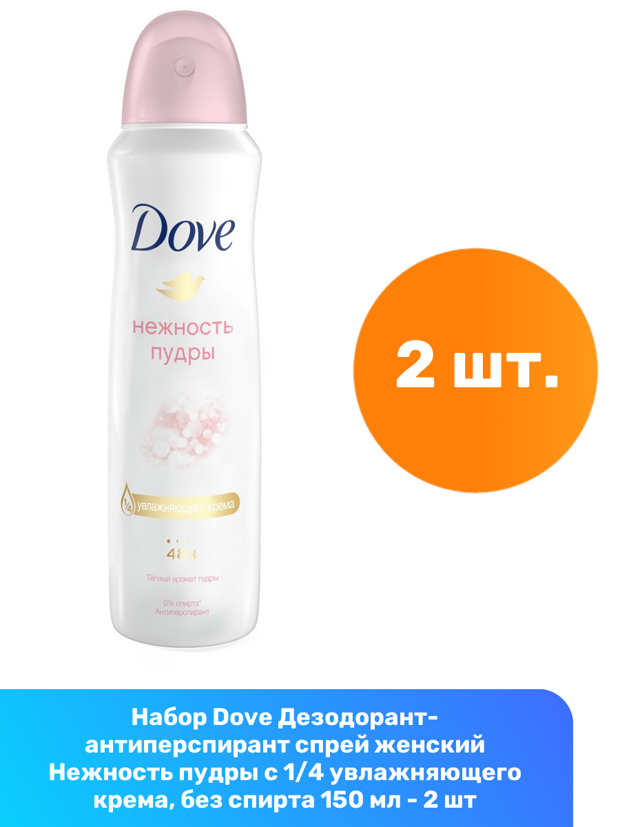Dove Дезодорант-антиперспирант спрей женский Нежность пудры с 1/4 увлажняющего крема, без спирта 150 мл - 2 шт