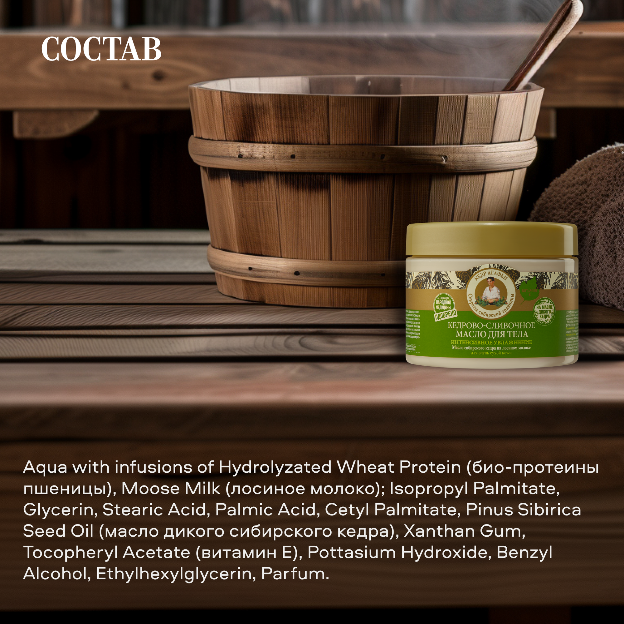 Масло для тела рецепты бабушки агафьи Кедрово-сливочное, интенсивное увлажнение, 300 мл