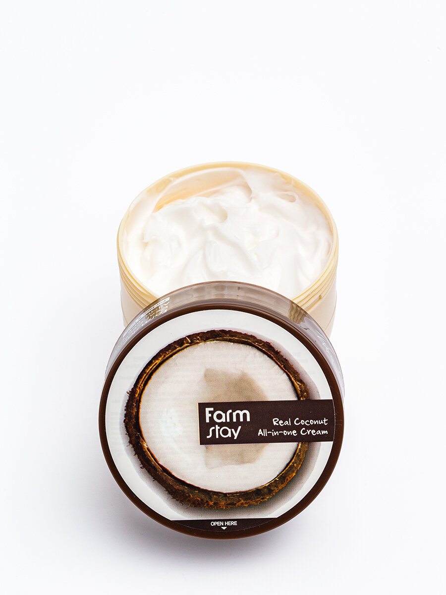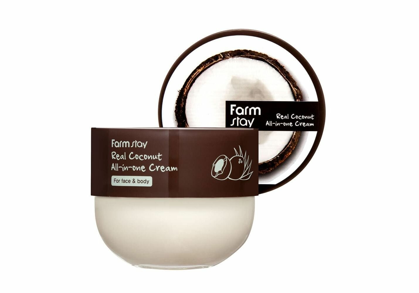 Купить FarmStay Real Coconut All-in-one Cream Многофункциональный крем для ухода за кожей лица, шеи и зоны декольте с кокосом, корейская косметика. 300мл