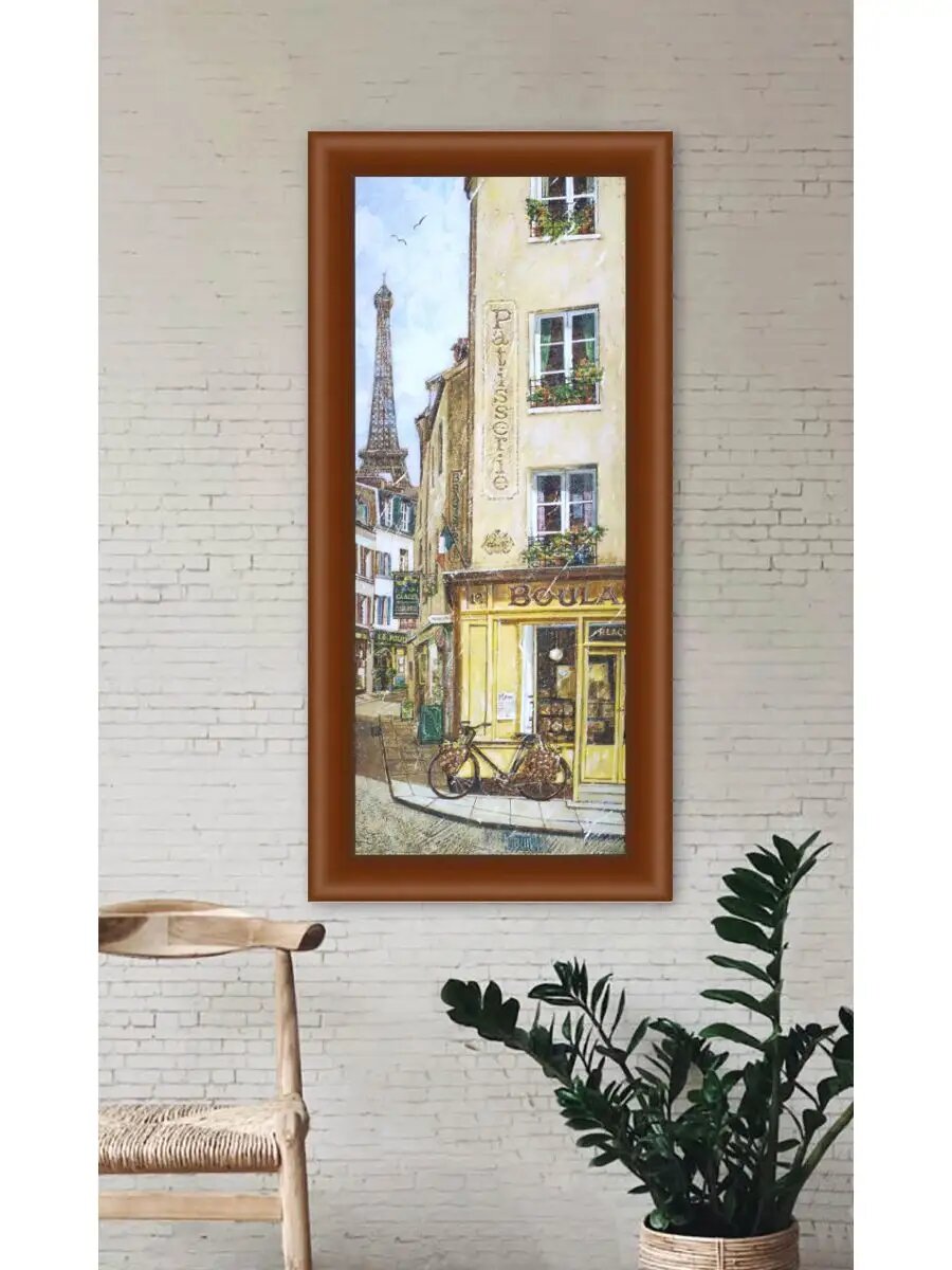 Панно 20х50 на стену в рамке 25х55 для прихожей вертикальная картина городской пейзаж