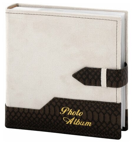 Фотоальбом BRAUBERG на 200 фотографий 10х15 см, под замшу, бумажные страницы, бокс, беж с коричневым, 390679, 390679