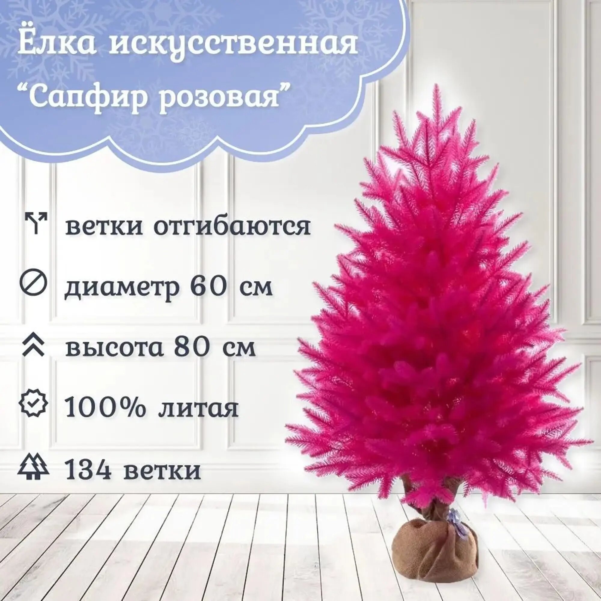 СохранитьНастольная розовая елка в мешочке Сапфир 80 см, литая 100%, царь елка СФ/РЗ-80 интересное: