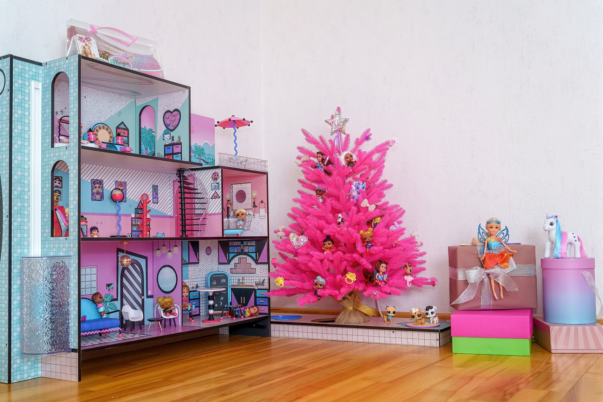 | Плюсы: | Компактная, уже с гирляндой, легко ставится и убирается. |