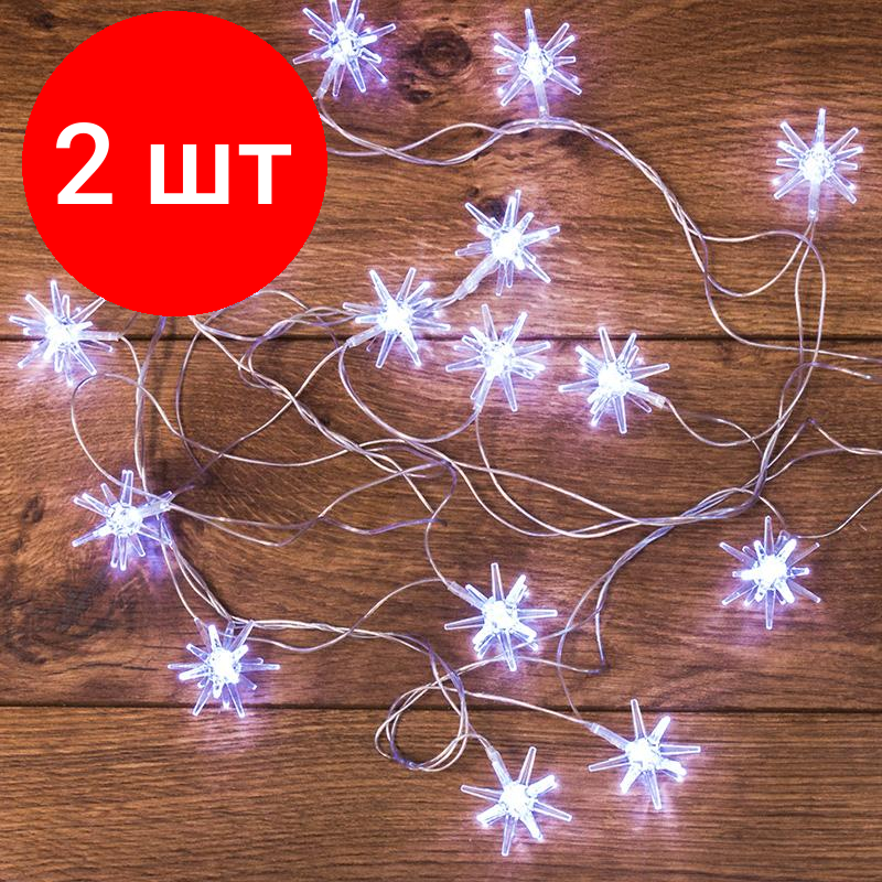 Светодиодная гирлянда NEON-NIGHT "Снежинки" 2.8 м, 8 режимов, 20 белых светодиодов, прозрачный провод