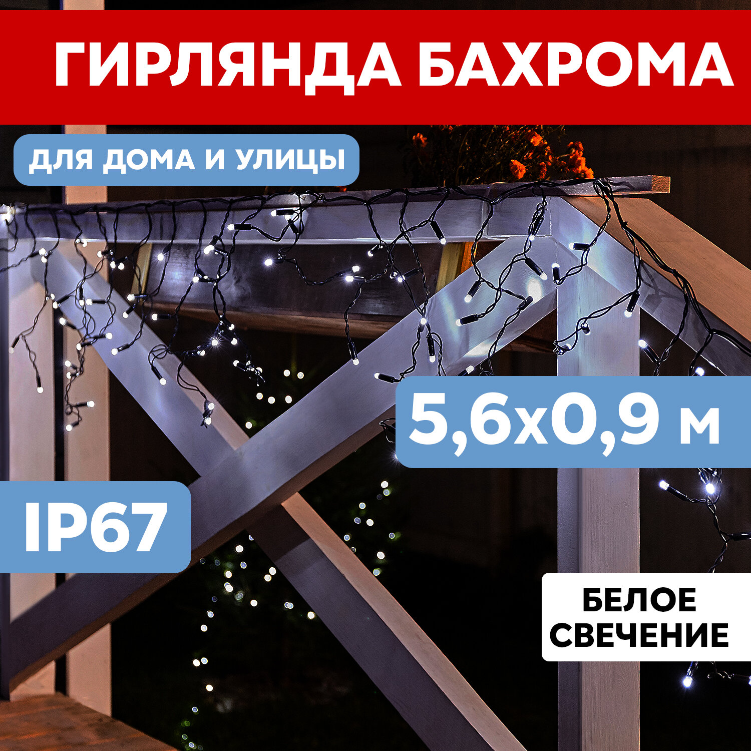 Гирлянда светодиодная Бахрома уличная, 5,6 х 0,9 м, 230 В, диоды белые, 240 LED, новогодние товары подарки/ электрогирлянда Neon-Night