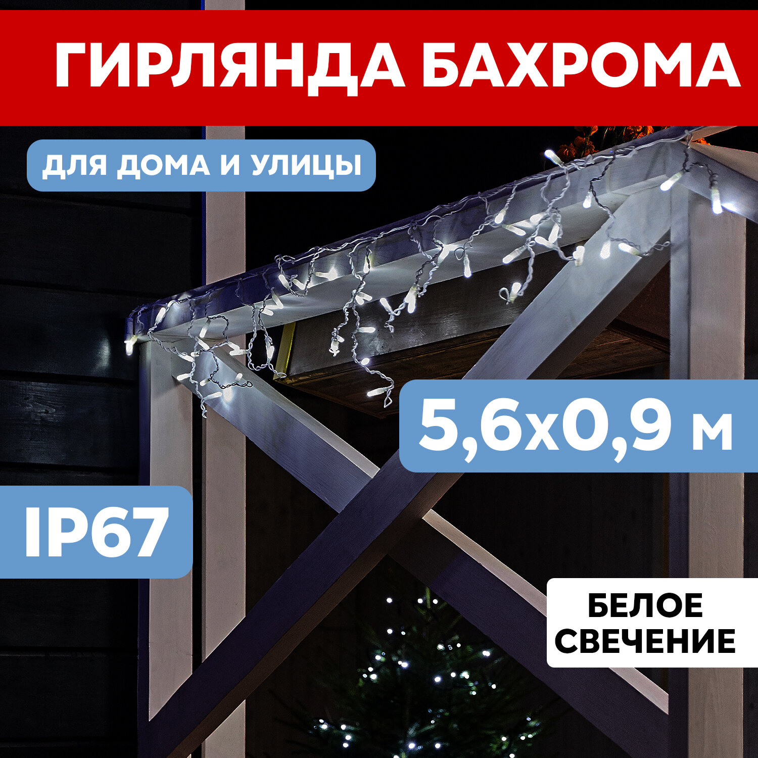 Гирлянда светодиодная Бахрома уличная, 5,6 х 0,9 м, 230 В, диоды теплый белый, 240 LED, новогодние товары подарки/ электрогирлянда Neon-Night