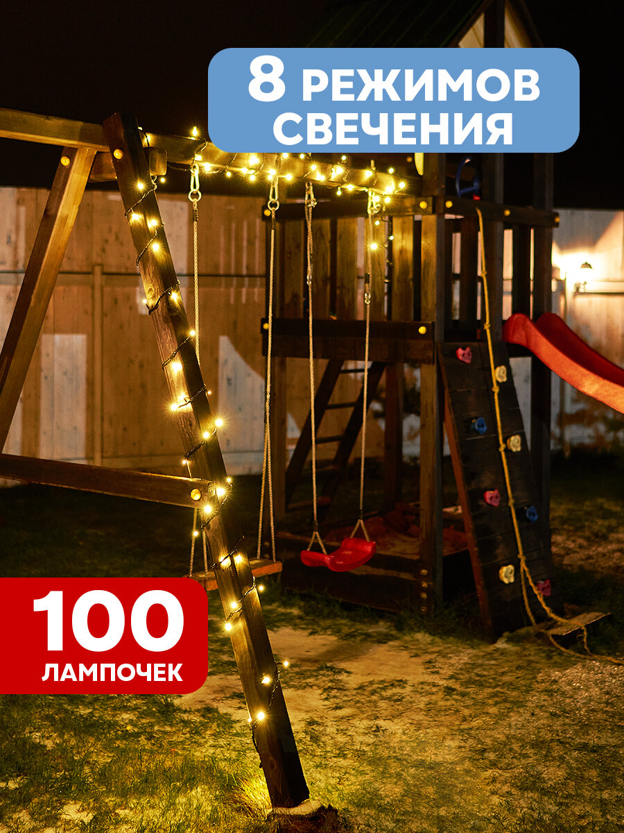 Светодиодная гирлянда NEON-NIGHT "Твинкл-Лайт" 10 м, 8 режимов, 100 тепло-белых светодиодов, черный провод