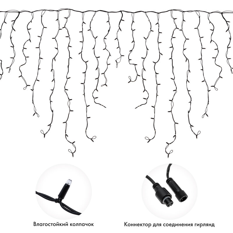 Купить Гирлянда Айсикл (бахрома) светодиодный, 6,0 х 1,5 м, черный провод "каучук", 230 В, диоды белые, 480 .