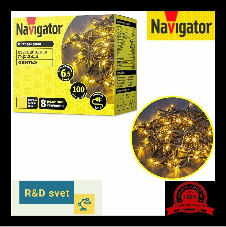 Гирлянда 61 803 NGF-S01-100RGBY-5-6.5m-230-C8-G-IP20 Navigator 61803 ( 1шт. )