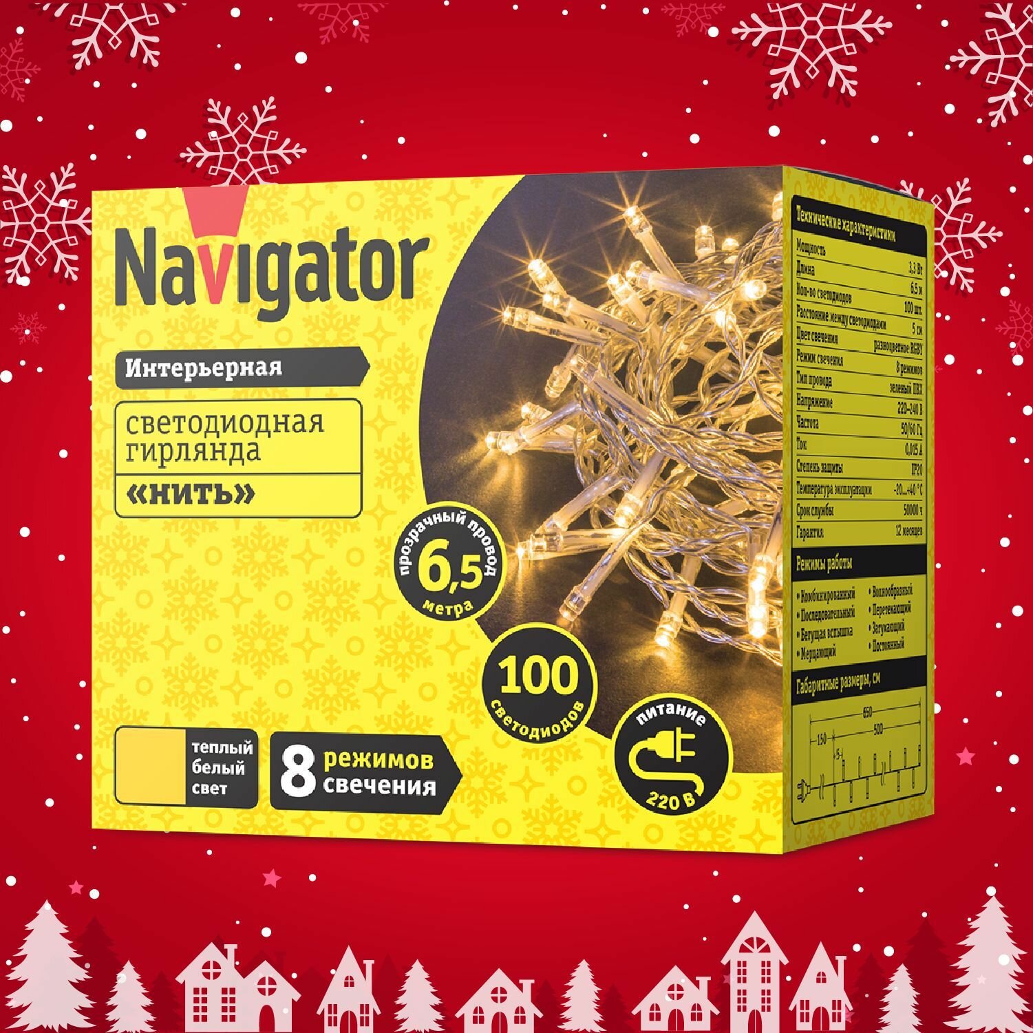 Гирлянда 61 805 NGF-S01-100CW-5-6.5m-230-C8-G-IP20 Navigator 61805 ( 1шт. )
