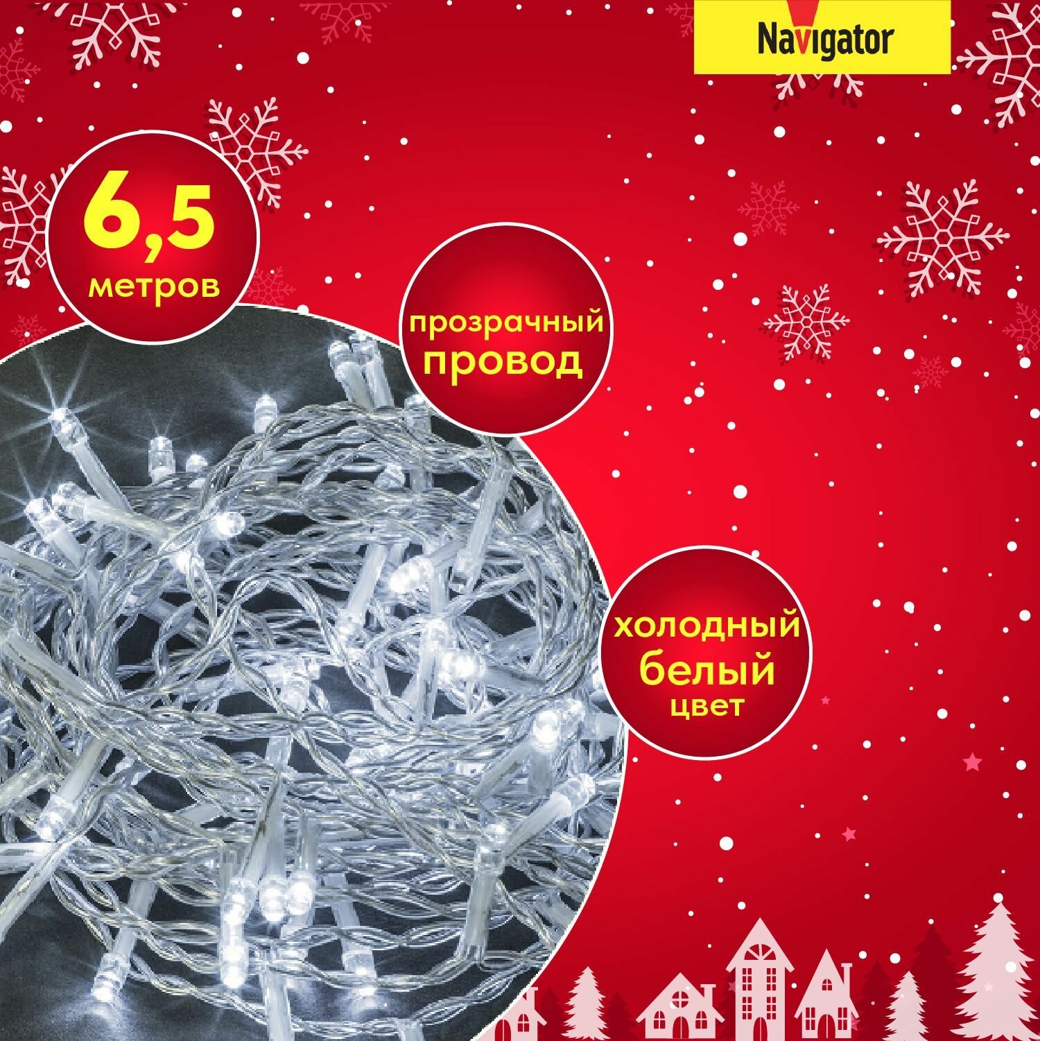 Гирлянда NAVIGATOR 6,5м 100LED холодный белый зеленый провод / электрическая, новогодняя